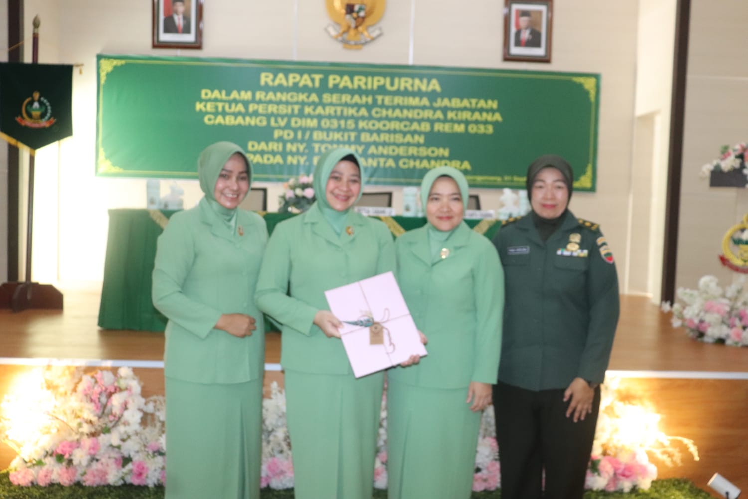 Serah terima jabatan tersebut diketahui dari Ny. Dalia Tommy Anderson kepada Ny. Rita Eka Ganta Chandra. Dan Rapat Paripurna tersebut dihadiri langsung Wakil Ketua, Pembina Harian dan Segenap Pengurus Persit Kartika Chandra Kirana Cabang LV Dim 0315 Tanjungpinang.