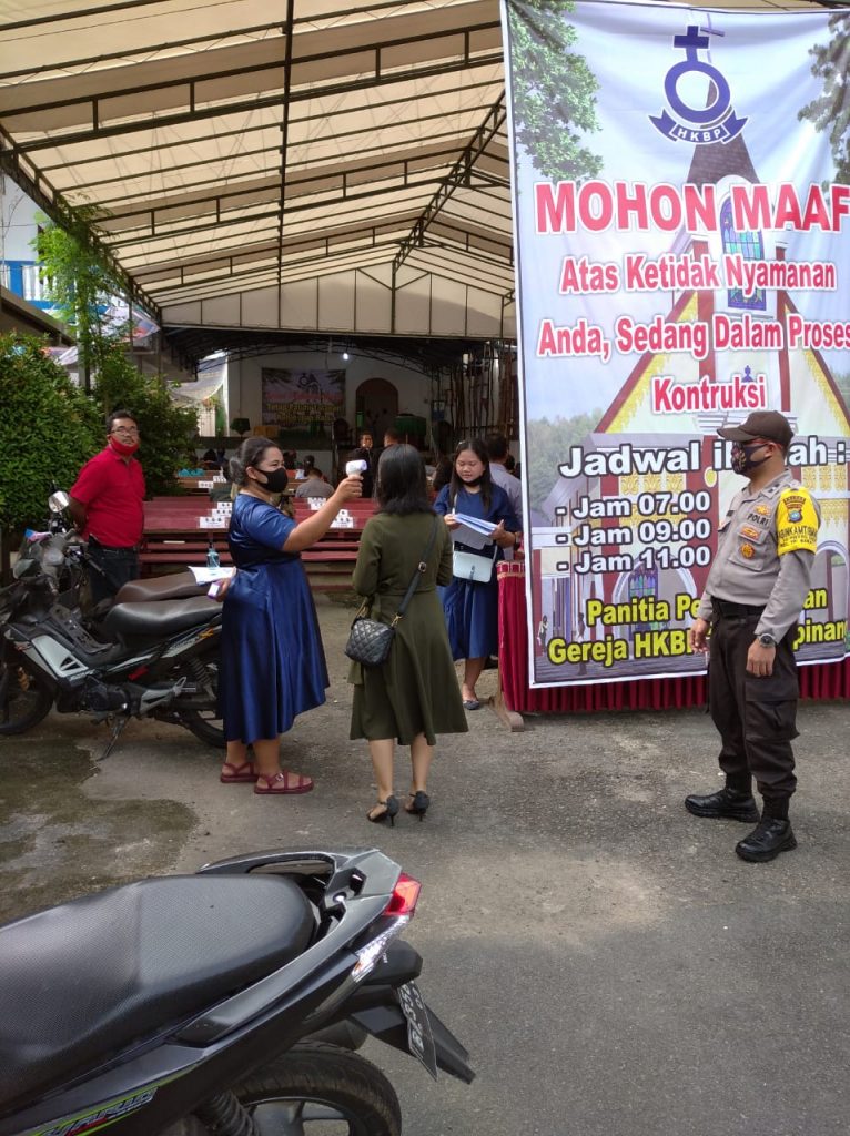 Minggu (28/6/2020) jajaran Polres Tanjungpinang melaksanakan pengamanan di tempat-tempat ibadah umat kristiani seperti gereja dan rumah ibadah kebaktian yang ada di Kota Tanjungpinang. Pengamanan dilaksanakan dengan menyampaikan himbauan protokol kesehatan seperti penggunaan masker, membersihkan tangan baik dengan sabun dan air maupun penggunaan hand sanitizer juga pengecekan suhu tubuh dan penerapan physical distance pada saat pelaksanaan ibadah.