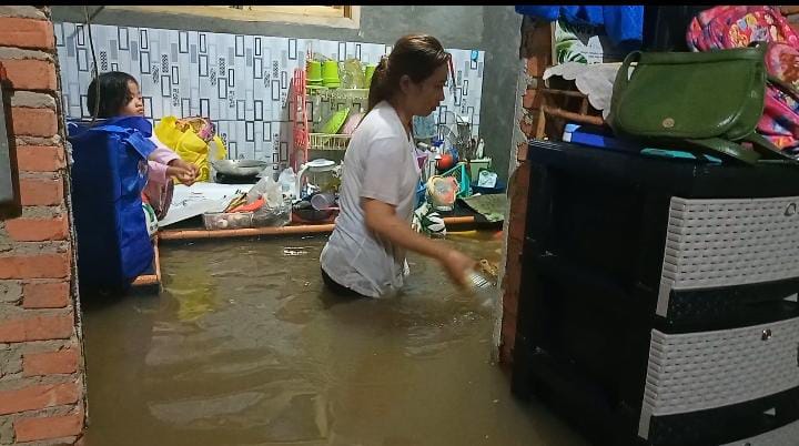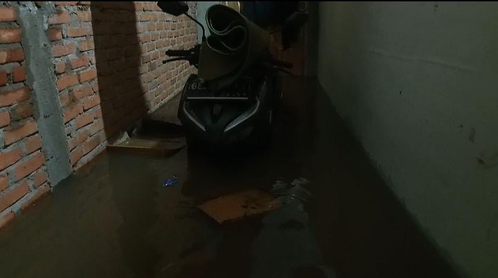 Hujan deras yang turun sekitar pukul 18.30 WIB sampai 20.30 WIB pada hari Minggu (23/10/2022), menjadikan beberapa rumah warga terendam air dengan debit ketinggian air kurang lebih dua meter dari permukaan tanah.