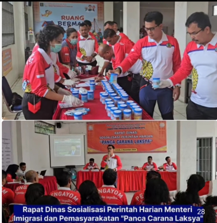 Pancur Batu, Sumatera Utara- Beritainbestigasi.com Dalam upaya mendukung pelaksanaan Tugas dan Fungsi pemasyarakatan dan memastikan “Panca Carana Laksya” Perintah Harian Menteri Imigrasi dan Pemasyarakatan dilaksanakan oleh seluruh jajaran Lapas Kelas II A Pancur Batu Kanwil Kemenimipas Sumut, Kalapas bersama seluruh Pejabat Struktutal, dan Pegawai mengadakan Rapat Dinas dan Test Urine. Jumat (1/11).