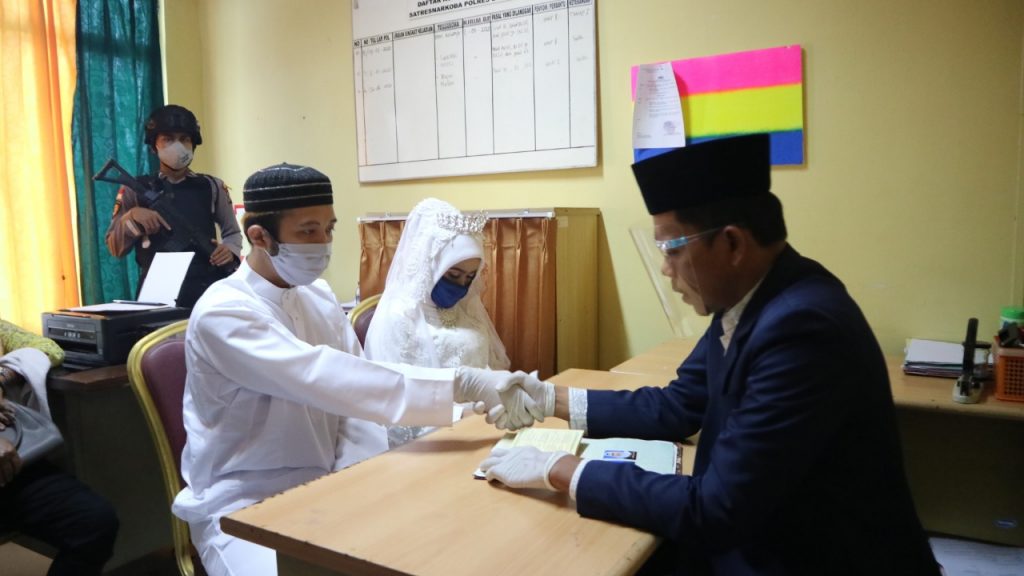 Bintan – BeritaInvestigasi.Com. Seorang Tahanan Polres Bintan terjerat kasus hukum berinisial S melangsungkan pernikahan prosesi ijab kabul dikawal petugas diruang Sat Narkoba, Sabtu, (11/7/20) pukul 11.00 Wib.