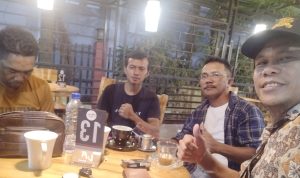 Darwin Sekretaris MABM Kecamatan Nanga Tayap(baju kotak-kotak) ketemu awak media menyampaikan kronologis persoalan. (Foto: Verry)