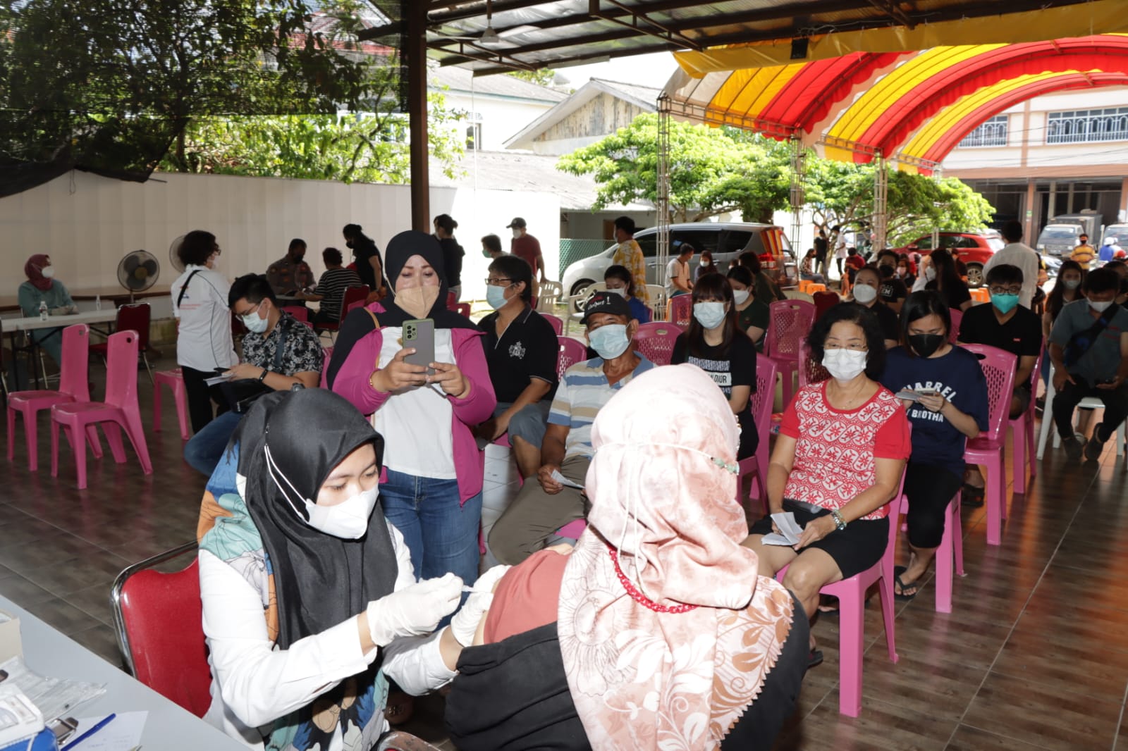 Dalam kegiatan vaksinasi tersebut, tampak antusias masyarakat yang berbondong-bondong mendatangi gerai vaksin presisi tersebut untuk divaksin.