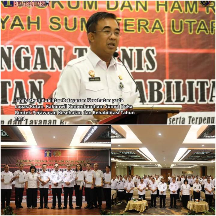 Medan, Sumatera Utara- Beritainvestigasi.com Tingkatkan kualitas pelayanan kesehatan pada Lapas dan Rutan, Kepala Kantor Wilayah Kementerian Hukum dan HAM Sumatera Utara, Agung Krisna, buka kegiatan Bimbingan Teknis Perawatan Kesehatan dan Rehabilitasi Tahun 2024. Rabu, (19/06/2024).