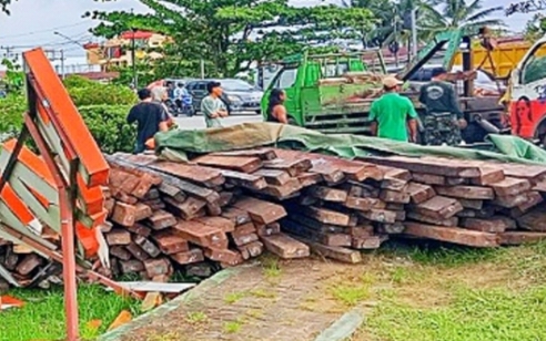 Tumpukan kayu jenis Ulin ukuran 8×16 diamankan petugas