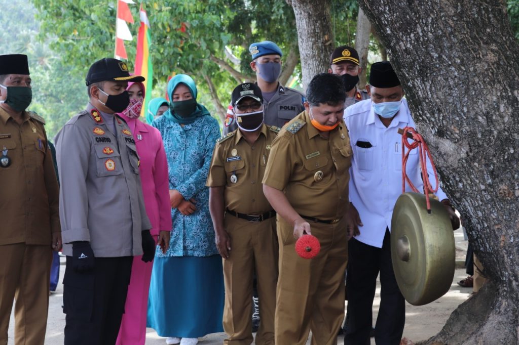 Peresmian Desa Tiangau Menjadi Kampung Tangguh Nusantara ditandai dengan Pemukulan Gong dan Pemotong Pita oleh Wakil Bupati Kepulauan Anambas didampingi Kapolres dan FKPD dan setelah itu dilakukan peninjauan Protokol kesehatan disekitar Kampung.
