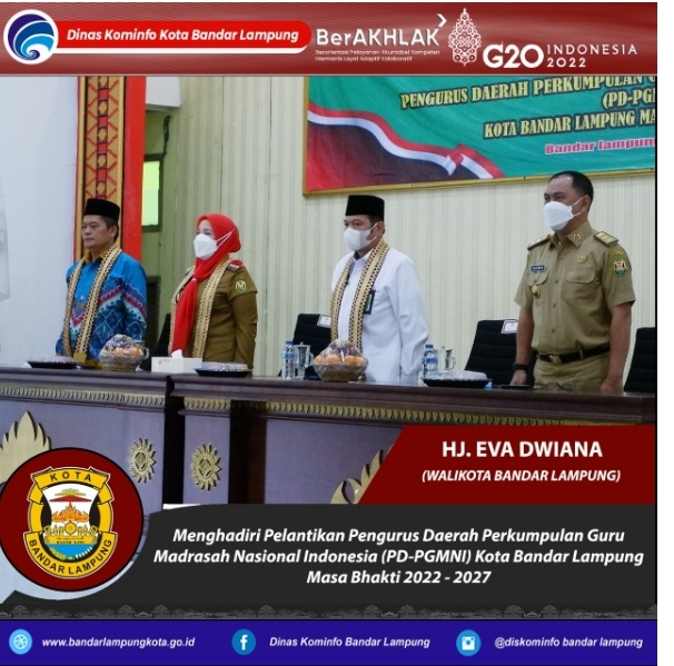 Bandar Lampung – Beritainvestigasi.com. Walikota Bandar Lampung menghadiri pelantikan Pengurus Daerah Perkumpulan Guru Madrasah Nasional Indonesia (PD-PGMNI).
