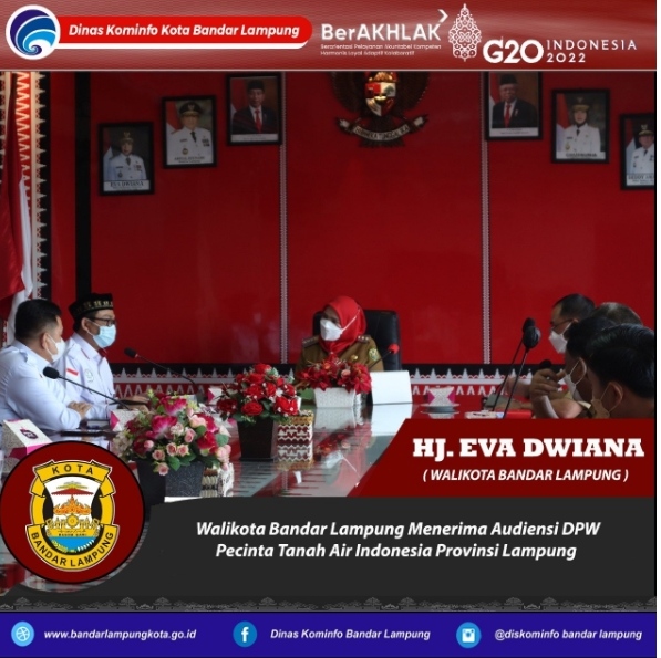 Bandar Lampung – Beritainvestigasi.com. Walikota Bandar Lampung, Hj. Eva Dwiana menerima Audiensi DPW Pecinta Tanah Air Indonesia Provinsi Lampung di Ruang Rapat Walikota Bandar Lampung. Senin, (27/06/2022).