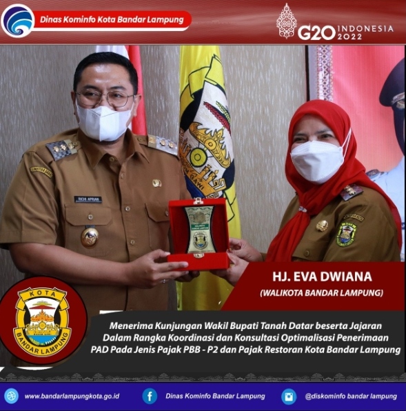 Bandar Lampung – Beritainvestigasi.com. Walikota Bandar Lampung, Eva Dwiana menghadiri kunjungan Wakil Bupati Tanah Datar beserta Jajaran dalam rangka Koordinasi dan Konsultasi terkait Optimalisasi Penerimaan PAD pada Jenis Pajak PBB – P2 dan Pajak Restoran Kota Bandar Lampung, Selasa (10/05/2022).