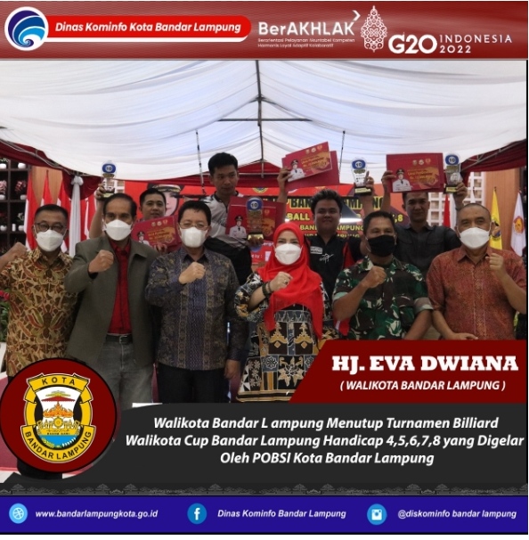 Walikota Bandar Lampung, Eva Dwiana mengapresiasi POBSI Bandar Lampung sebagai Panitia sekaligus tuan rumah penyelenggara Walikota Cup Bandar Lampung 2022. Selain itu, gelaran Turnamen Billiard Walikota Cup Bandar Lampung sebagai ajang untuk sosialisasi kepada masyarakat untuk merubah stigma negatif yang melekat selama ini. (Wes/Info/Red).