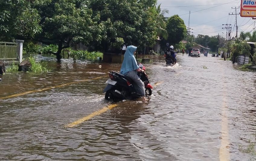 Foto: Saat terjadi banjir di Kota Ketapang beberapa titik Jalan raya terendam air pasang (17 Desember 2024)